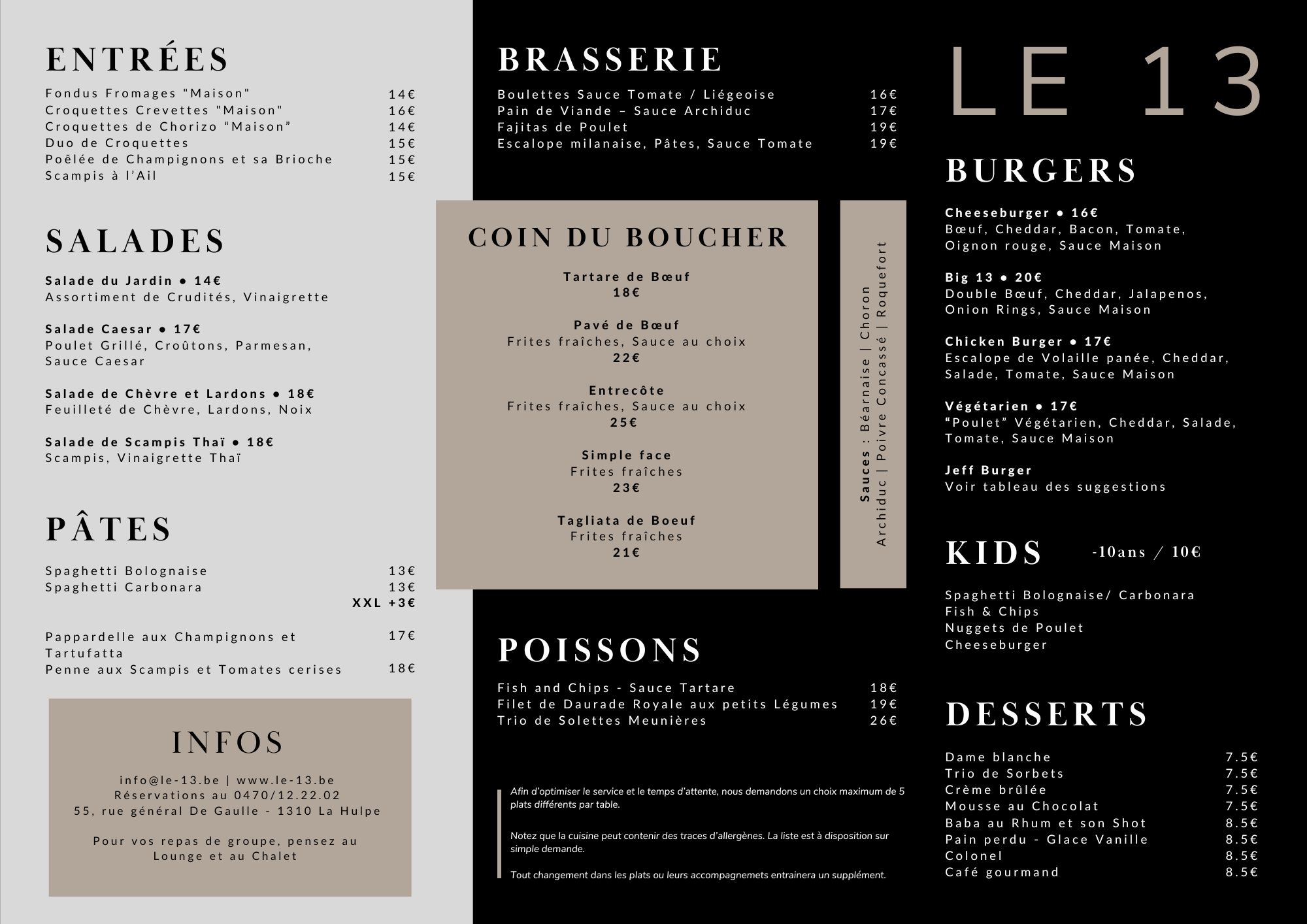 Le 13 vous accueille chaleureusement pour manger ou pour boire un verre.